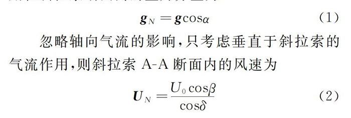 忽略轴向气流的影响,只考虑垂直于斜拉索的气流作用,则斜拉索A-A断面内的风速为